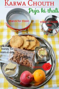 • थाली सजाना: करवा में पानी, मिठाई और दीपक रखें।