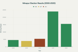 समग्र प्रभाव: मीनापुर में जन सुराज की उपस्थिति त्रिकोणीय मुकाबला बना सकती है, जैसा कि 2020 में लोजपा की उपस्थिति ने किया था। तब अजय कुमार (लोजपा) को 43,496 वोट मिले थे, जिससे मुकाबला तीन-तरफा हो गया था। इसका लाभ आरजेडी को मिला था।