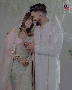 The first images from Hina and Rocky’s wedding show the couple in traditional attire, exchanging vows in what appears to be a private indoor ceremony with only close family and friends in attendance. Hina wore a pastel-colored lehenga while Rocky chose a simple sherwani.