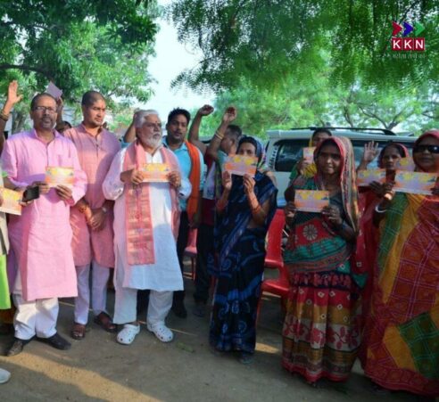 Distribution of rally pamphlets and Modi government achievement cards