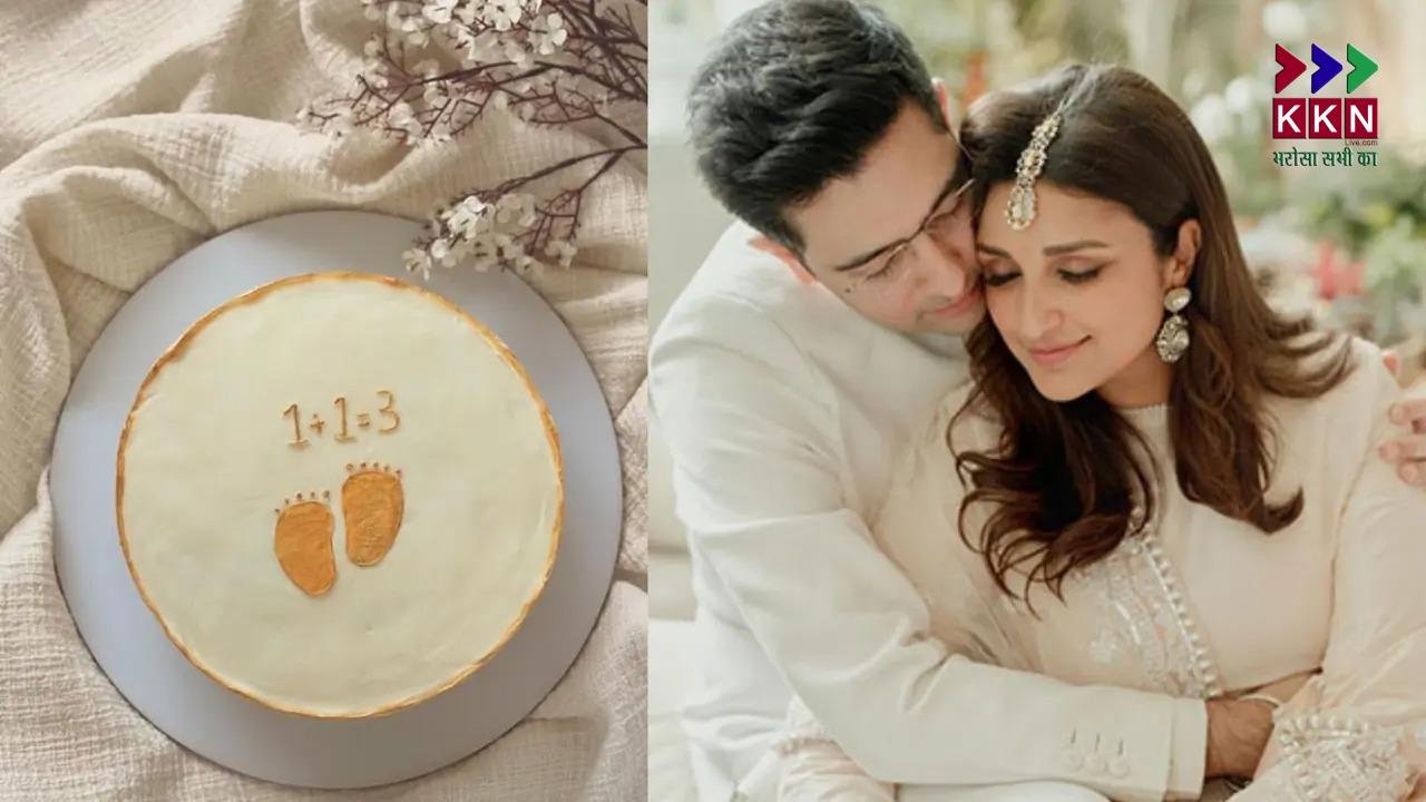 परिणीति चोपड़ा और राघव चड्ढा ने इंस्टाग्राम पर एक तस्वीर और वीडियो पोस्ट किया। तस्वीर में लिखा था — “1+1=3” और साथ में बच्चे के पैरों के निशान बने थे।